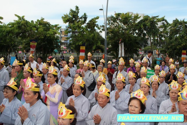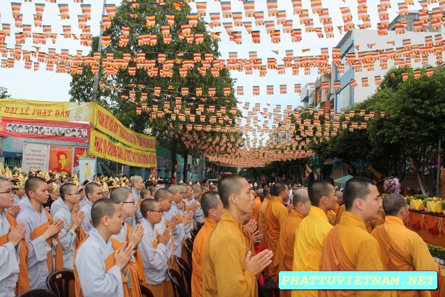 Trong bầu không khí trang nghiêm, thắm tình đạo vị cùng hàng triệu tín đồ PGVN hướng về ngày Đức Thế Tôn đản sinh cách đây 2639 năm (2559 + 80 = 2639), tức năm 624 trước công nguyên. Bước vào ĐLPD.2559, tứ chúng đồng niệm Phật cầu gia bị, chào quốc kì – đạo kì – một phút nhập từ bi quán.