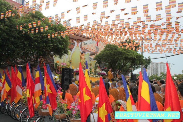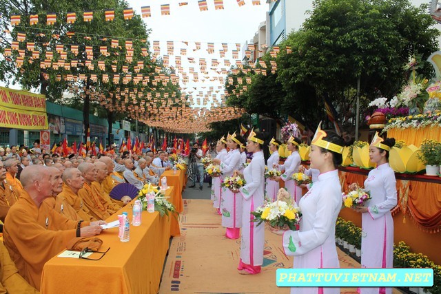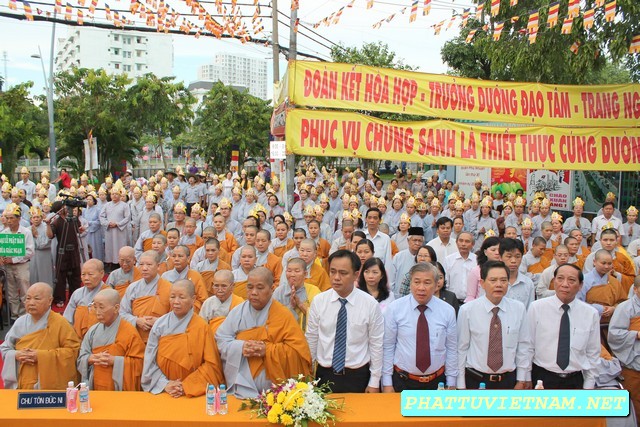 Thay mặt TWGH – HT.Thích Như Niệm tuyên đọc thông điệp chào mừng đại lễ PD.2559 của Đức Pháp Chủ GHPGVN, HT.Thích Huệ Minh (Trưởng ban trị sự PG Phú Nhuận) tuyên đọc diễn văn chào mừng PD.2559 của Chủ tịch HĐTS.GHPGVN.