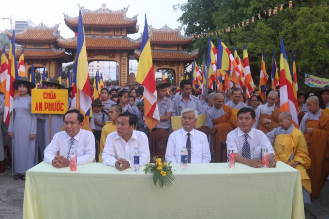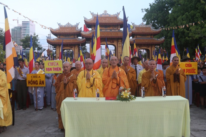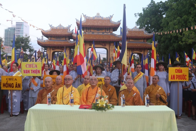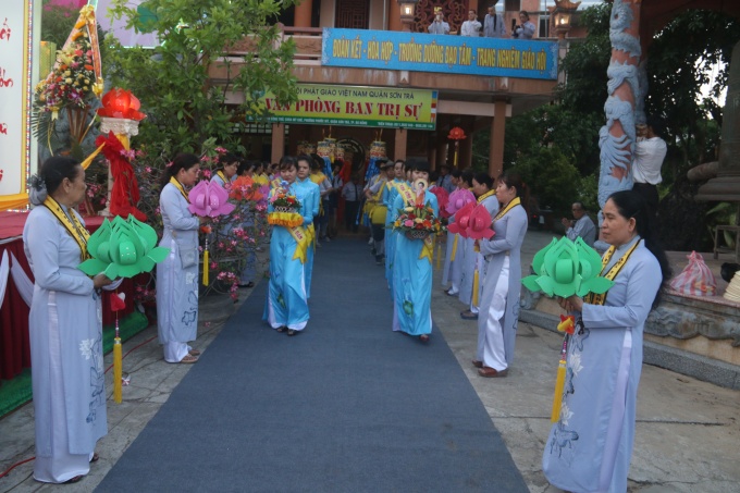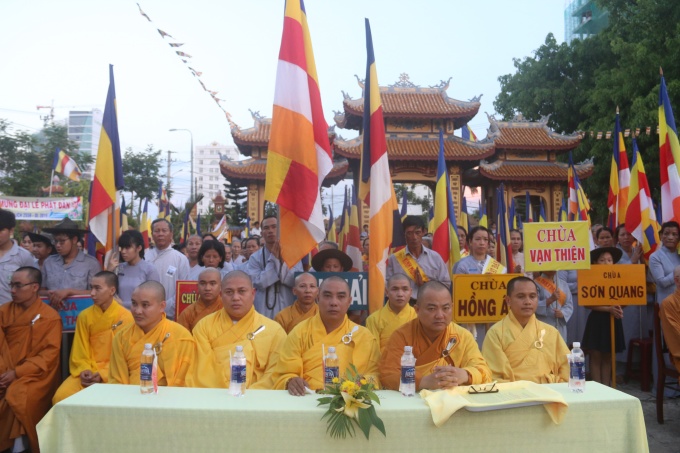 Quang lâm chứng minh và tham dự lễ có HT. Thích Trí Viên – UVTT BTS GHPGVN Tp Đà Nẵng, Trưởng BTS GHPGVN quận Sơn Trà; TT. Thích Quảng Độ – Phó trưởng ban TT BTS GHPGVN quận Sơn Trà; ĐĐ. Thích Thông Quang – Phó trưởng BTS GHPGVN quận Sơn Trà; ĐĐ. Thích Nhuận Hòa – Phó trưởng BTS GHPGVN quận Sơn Trà cùng Chư Tôn đức Tăng Ni BTS, Chư tôn đức Tăng Ni trú trì, đạo hữu Phật tử, Gia đình Phật tử các chùa trong quận Sơn Trà.