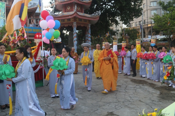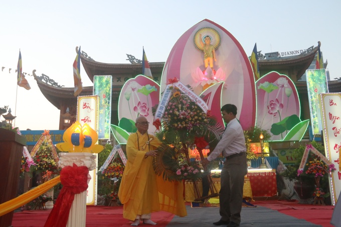 Tại buổi lễ, HT. Thích Trí Viên đã cung tuyên Thông điệp Phật đản PL.2559 của Đức Pháp chủ GHPGVN, TT. Thích Quảng Độ đã tuyên đọc Diễn văn Phật đản của Chủ tịch HĐTS GHPGVN. Sau đó, lãnh đạo các cấp chính quyền đã tặng hoa chúc mừng Phật đản và thả bong bóng, bồ câu cầu nguyện hòa bình.