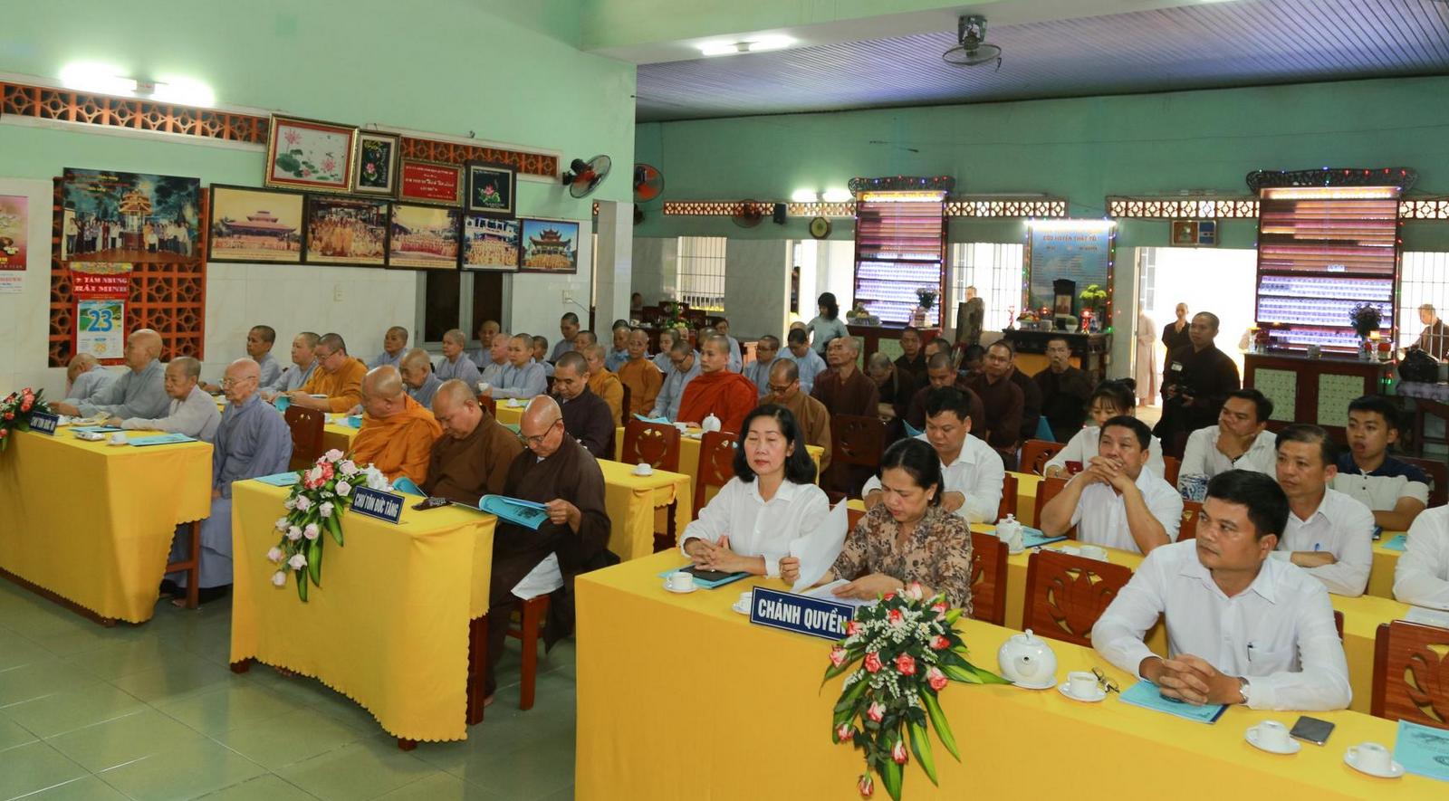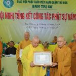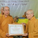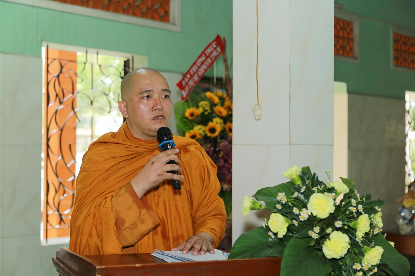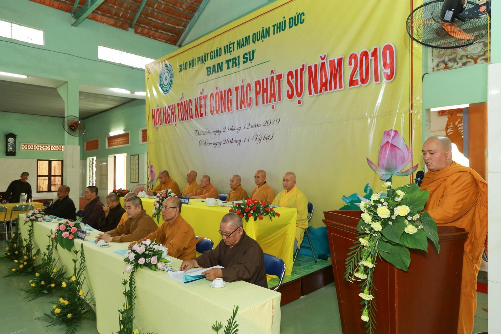 ĐĐ.Thích Minh Nghi – Phó Trưởng Ban, Chánh Thư ký BTS GHPGVN Q.Thủ Đức báo cáo tổng kết về các công tác Phật sự trong năm 2019.