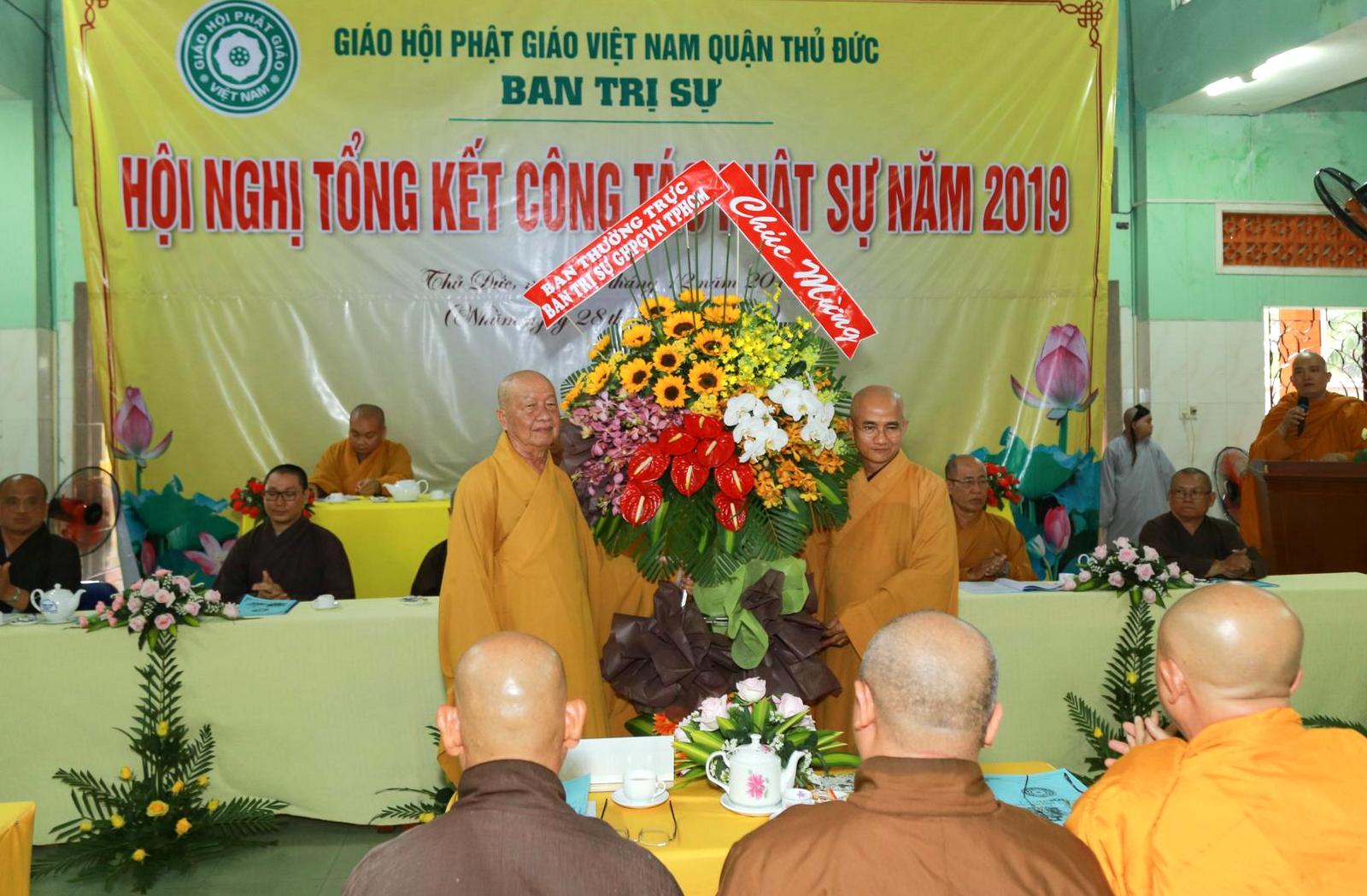 Tại buổi lễ, HT.Thích Thiện Đức – Phó Trưởng Ban Trị sự kiêm Trưởng ban kiểm soát GHPGVN TP gửi lời chúc mừng đến chư Tôn đức Tăng Ni, Phật tử Q.Thủ Đức đã đạt được nhiều thành tựu trong công tác Phật sự nổi bậc trong năm qua. Hòa thượng cũng gửi lời cám ơn đến chính quyền địa phương đã tạo mọi điều kiện thuận lợi cho Phật giáo Quận hoạt động theo đúng đường hướng chủ trương của Giáo hội.