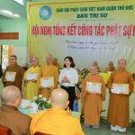 Bà Trịnh Thị Mỹ Huệ – Phó Chủ tịch UBMTTQVN Q.Thủ Đức đã đánh giá cao về các hoạt động từ thiện xã hội của Tăng Ni Phật giáo Q.Thủ Đức, cũng như sự hưởng ứng nhiệt tình trong các phong trào đảm bảo an ninh xã hội, bảo vệ môi trường, các phong trào do MTTQVN Q.Thủ Đức phát động.