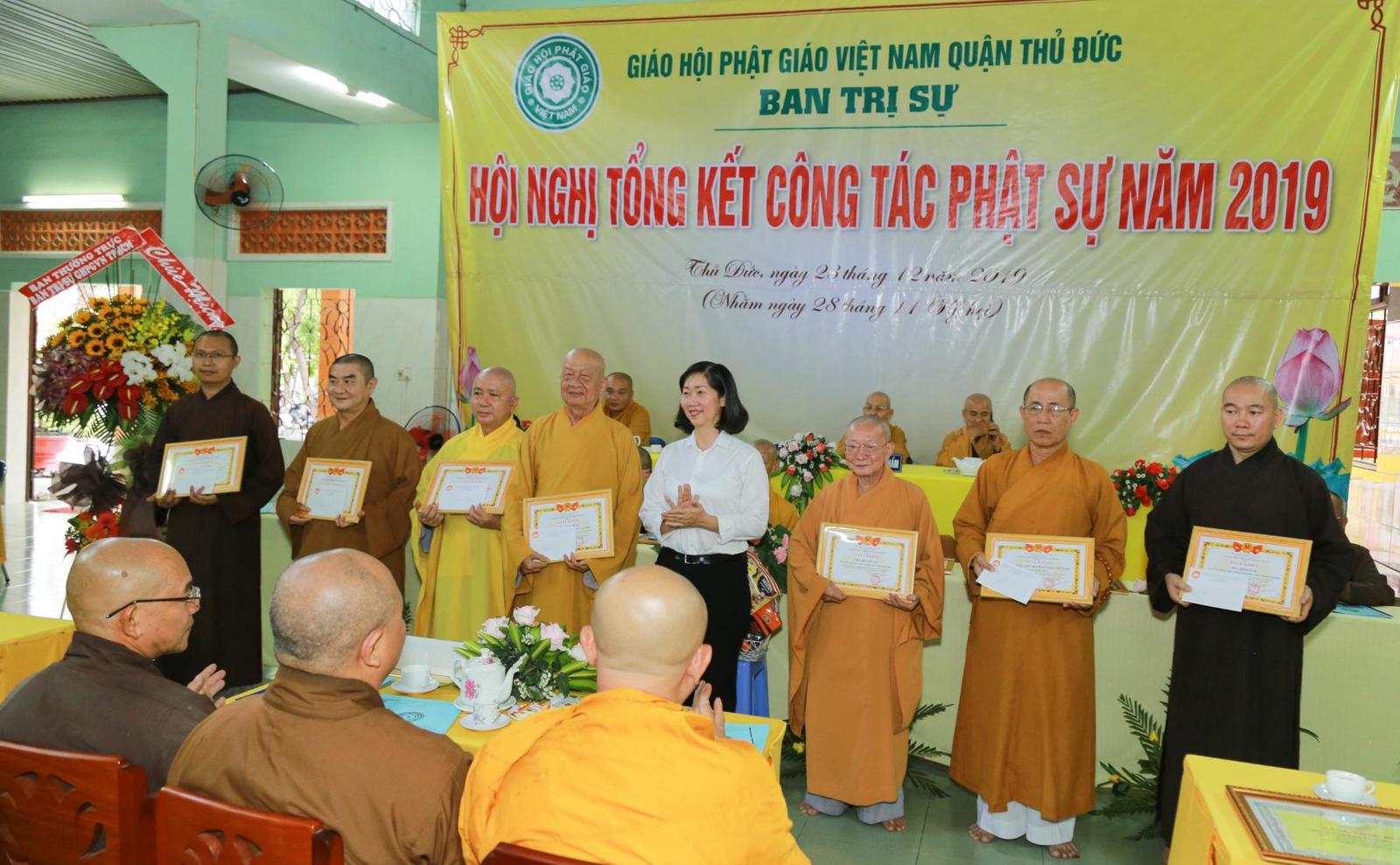 Về công tác từ thiện, an sinh xã hội, trong năm 2019, Phật giáo Q.Thủ Đức đã ủng hộ đóng góp các chương trình vì biển đảo quê hương, vì người nghèo, cứu trợ đồng bào nghèo bị thiên tai… với tổng kinh phí là 8.215.500.000 đ (Tám tỷ hai trăm mười lăm triệu năm trăm ngàn đồng chẵn).
