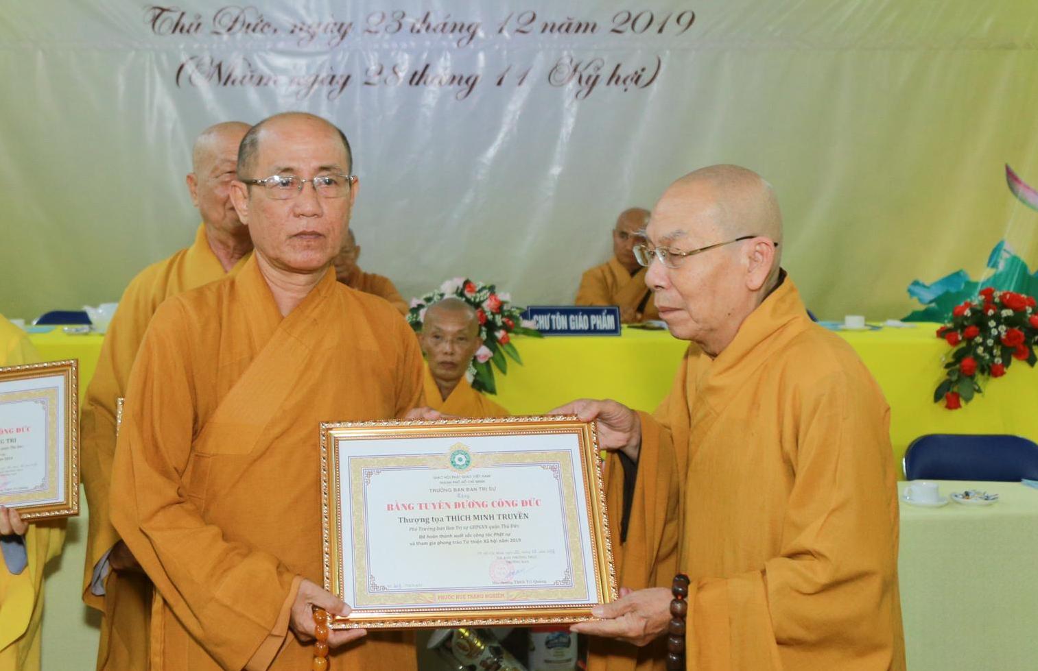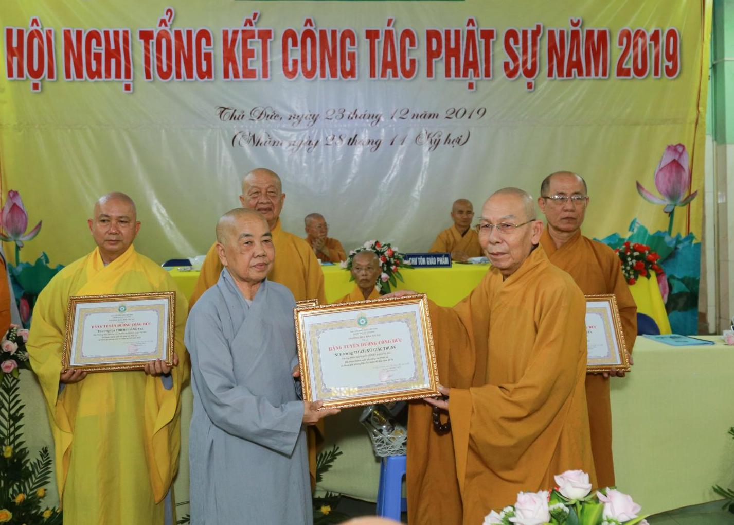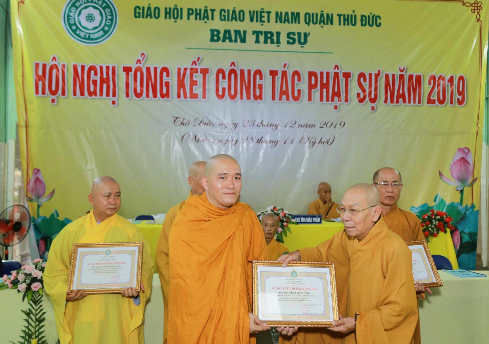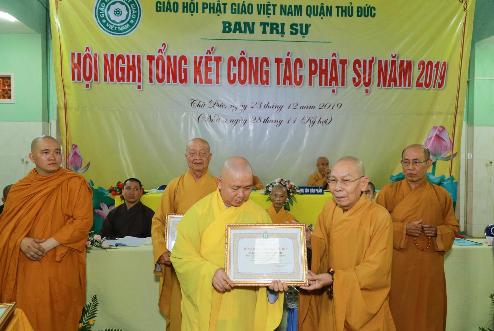 Với những thành quả đã đạt nêu trên, Ban thường trực BTS GHPGVN TP, Chính quyền Q. Thủ Đức đã tặng bằng Tuyên dương Công đức, bằng Công đức, bằng khen đến tập thể, cá nhân đã có những thành tích, đóng góp tích cực trong các hoạt động Phật sự trên địa bàn Quận, TP và các vùng lân cận.