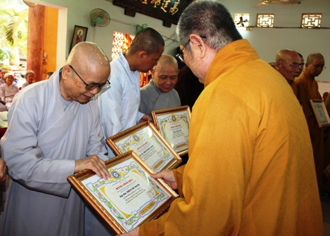 Dịp này, Phật giáo Quận 8 đã đón nhận bằng Tuyên dương Công đức và bằng Công đức do Ban Thường trực Ban Trị sự GHPGVN TP.HCM tặng cho tập thể và cá nhân tích cực đóng góp công tác Phật sự. Ban Tổ chức buổi lễ cũng đón nhận những lẵng hoa gởi đến chúc mừng.