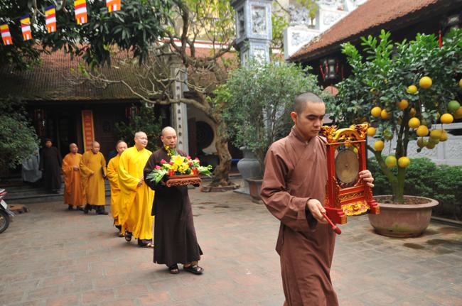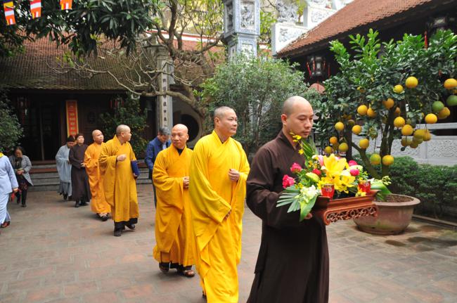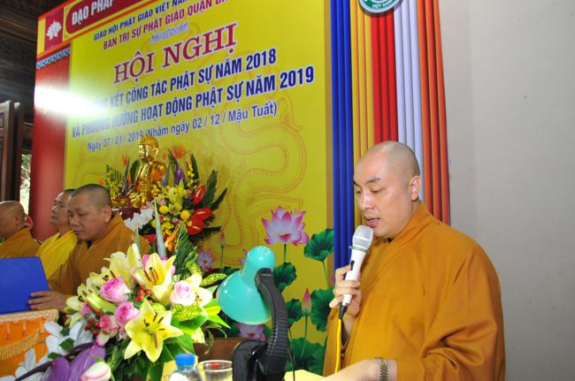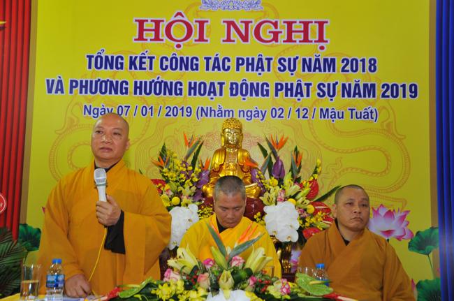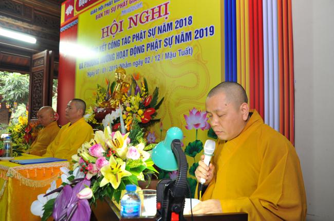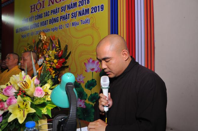 Sau đó, sư thầy Thích Đàm Trà – Phó BTS GHPGVN quận Ba Đình đã đọc bản báo cáo tổng kết công tác Phật sự năm 2018 và phương hướng hoạt động Phật sự năm 2019 tới toàn thể hội chúng.
