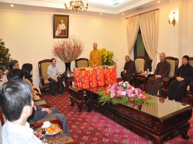 Tại buổi gặp mặt HT Thích Thanh Nhã thay mặt Tăng Ni trên địa bàn Quận chúc Tết các vị lãnh đạo Quận nhà một năm mới an khang, thịnh vượng, Phật giáo quận Tây Hồ cùng kết hợp góp phần xây dựng và phát triển Quận nhà ngày càng giàu đẹp.