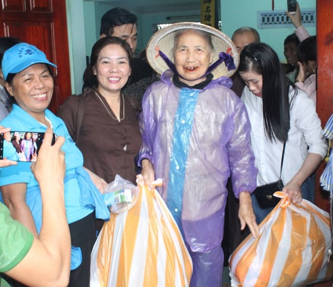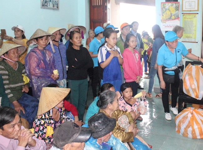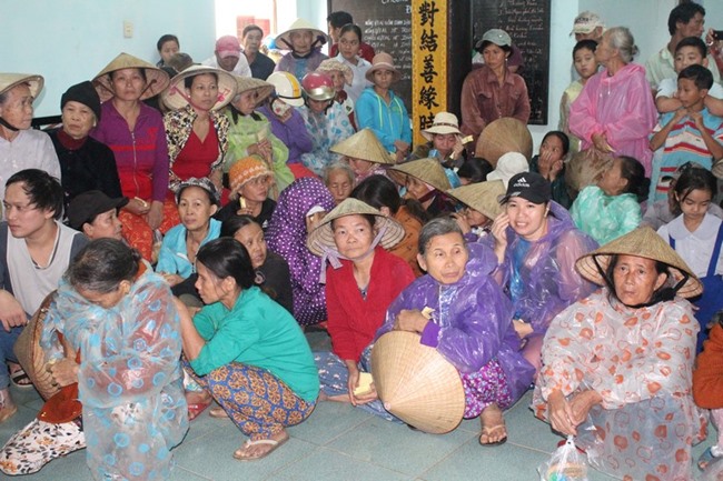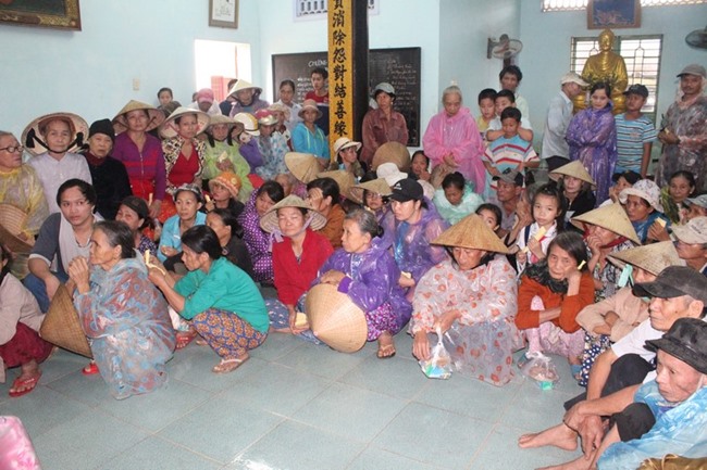 Người dân xã Đại Hồng bày tỏ lòng biết ơn đến chư tôn đức, phật tử đã đồng cảm với bà con trong cảnh mất mát sau cơn lũ lụt.