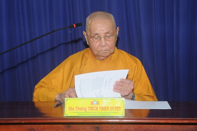 Cuộc họp dưới sự chủ trì của HT.Thích Thiện Duyên, Thành viên HĐCM, Phó Chủ tịch HĐTS GHPGVN, Trưởng BTS GHPGVN tỉnh Quảng Nam; sự tham dự của Chư tôn Giáo phẩm Ban Thường trực BTS PG tỉnh, các ban ngành trực thuộc, BTS PG các huyện, thị xã, thành phố, chư tôn đức tăng – ni tiêu biểu trong toàn tỉnh.