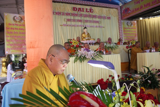 Tại buỗi lễ, sau phần nghi thức niệm Phật cầu gia bị, chào Quốc kỳ, Đạo kỳ, tuyên bố lý do, giới thiệu chương trình và thành phần tham dự; Hòa thượng Thích Thiện Pháp – Phó Chủ tịch Thường trực Hội đồng Trị sự GHPGVN tuyên đọc Thông điệp Đại lễ kỷ niệm 35 năm thành lập Giáo hội Phật giáo Việt Nam của Đức Pháp chủ Giáo hội Phật giáo Việt Nam, Hòa thượng Thích Thiện Sanh – Ủy viên Thường trực Hội đồng Trị sự, Phó Trưởng ban Thường trực Ban Trị sự GHPGVN tỉnh Sóc Trăng đọc Diễn văn Đại lễ kỷ niệm 35 năm thành lập Giáo hội Phật giáo Việt Nam của Hòa thượng Chủ tịch Hội đồng Trị sự.