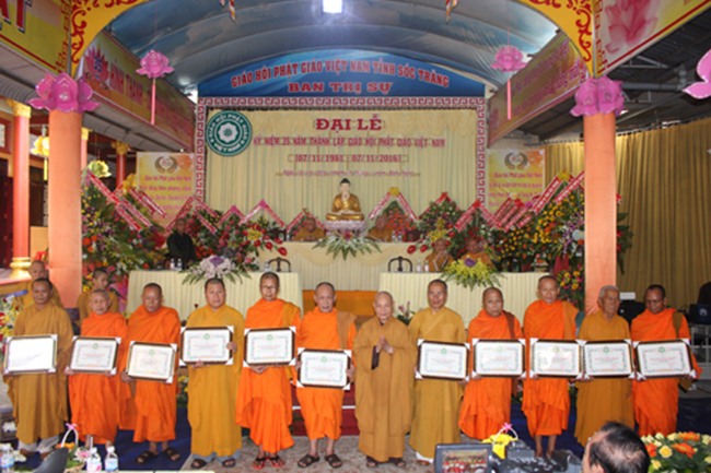 Dịp này Trung ương Giáo hội cũng đã tặng Bằng Tuyên dương Công đức cho 12 tập thể và 24 cá nhân thuộc Giáo hội Phật giáo Việt Nam tỉnh Sóc Trăng đã có nhiều công đức trong các công tác Phật sự, tích cực xây dựng, phát triển Ban Trị sự từ ngày thành lập đến nay.