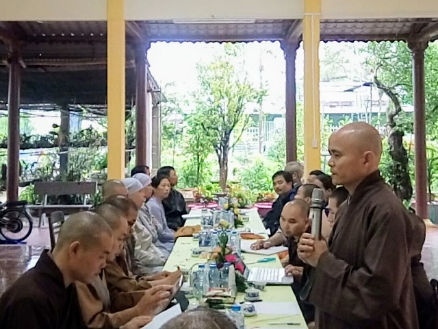 Mởi đầu phiên họp, ĐĐ.Thích Tịnh Đức, Trưởng BTS GHPGVN TP.Tam Kỳ, báo cáo quy trình cơ cấu nhân sự và trình danh sách nhân sự BTS PG thành phố nhiệm kỳ mới 2016-2021.