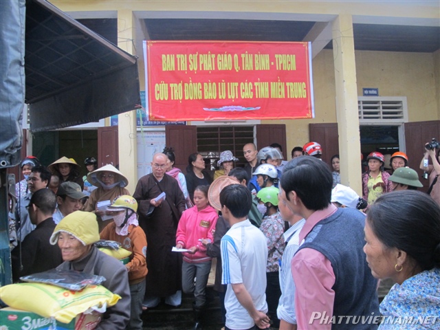 “GHPGVN Quận Tân Bình đã vận động các nhà tài trợ, đến chia sẻ, động viên bà con nhân dân, sau đó phát quà tận tay cho đồng bào bị ảnh hưởng lụt bão” – báo cáo của GHPGVN Quận Tân Bình cho hay.
