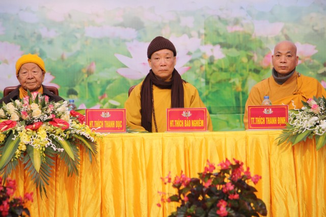 Tại buổi lễ, TT.Thích Thanh Hòa phát biểu khai mạc; ĐĐ.Thích Thanh Ân, Chánh Thư ký BTS báo cáo tổng kết Phật sự.