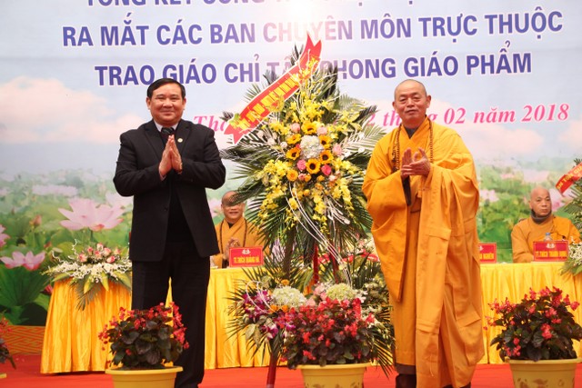 Ông Phạm Văn Xuyên, Phó Chủ tịch UBND tỉnh thay mặt chính quyền tỉnh đã ghi nhận những đóng góp tích cực của GHPGVN tỉnh nhà. Ông mong muốn BTS tỉnh, các huyện và chư tôn đức Tăng Ni trụ trì các chùa, tự viện phát huy tinh thần hộ quốc an dân, là người tu sĩ tốt, công dân tốt, đóng góp vào sự phát triển chung của tỉnh nhà.