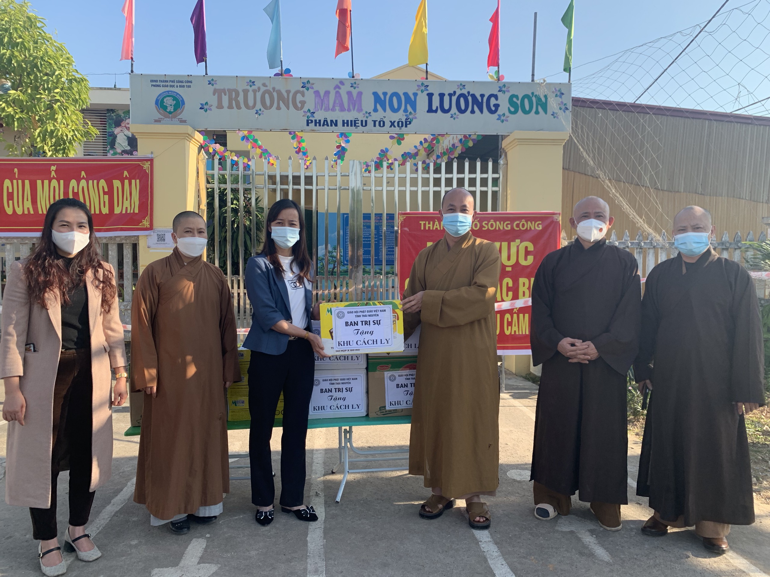 Chiều ngày 2/12 Đại Đức Thích Chúc Tiếp, Phó Ban Trị Sự GHPGVN Tỉnh Thái Nguyên làm trưởng đoàn cùng quý Tăng ni trong tỉnh đã tới thăm hỏi, tặng quà các em học sinh trong khu cách ly tập trung tại Trường Mầm Non số 2 xã Hoá Thượng – huyện Đồng Hỷ.