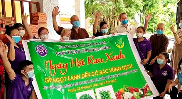 Với tinh thần tương thân tương ái, hướng về người dân, công nhân lao động nghèo tại các khu vực phong tỏa, khu vực cách ly tại xã Đa Tốn, Huyện Gia Lâm, TP. Hà Nội đang gặp nhiều khó khăn trong những ngày qua. Bà con Phật tử Thái Nguyên đã vận động quyên góp được hơn 15 tấn rau củ quả, 5 tấn gạo, 500 thùng mì cùng nhiều lương thực, thực phẩm khác tổng trị giá gần 300 triệu đồng. Gởi đến chia sẽ khó khăn với người dân vùng dịch bệnh.