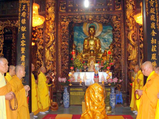 Tiếp theo là nghi thức Khai Chung Bản, Thượng phan Chiêu linh, Khai Kinh – Nhiễu đàn, Cúng ngọ dưới sự chủ trì của TT.Thích Nhuận An và Ban Kinh Sư.