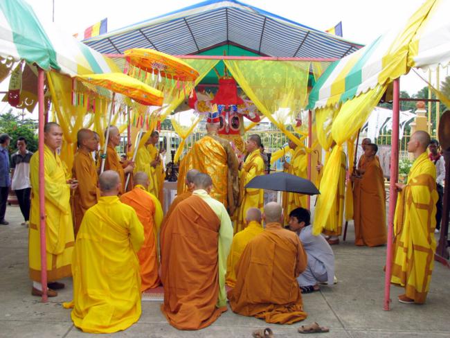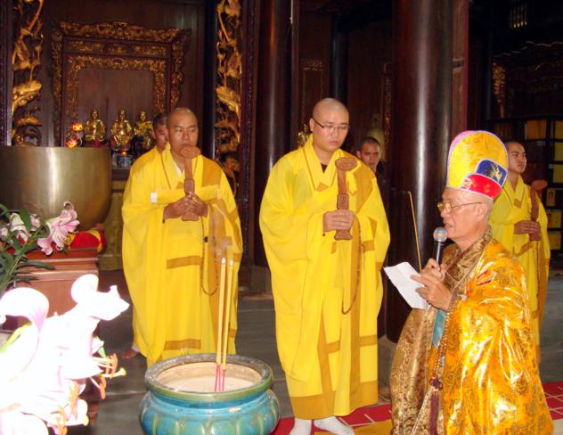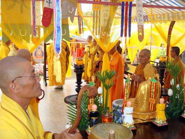 Đại lễ chính thức diễn ra rất trang nghiêm, trọng thể vào sáng ngày mùng 07/07/năm Tâm Mão, dưới sự chứng minh của: TT.Thích Huệ Minh – Trưởng BTS PG tỉnh Tiền Giang, TT.Thích Nguyên Tấn; TT.Thích Minh Hùng; TT.Thích Hoằng Đức; TT.Thích Thiện Đức; Thượng tọa Chủ sám Thích Nhuận An – Trụ trì Chùa Thiên Đức (TP.HCM) và Chư tôn đức trong Ban Chức Sự trường hạ.