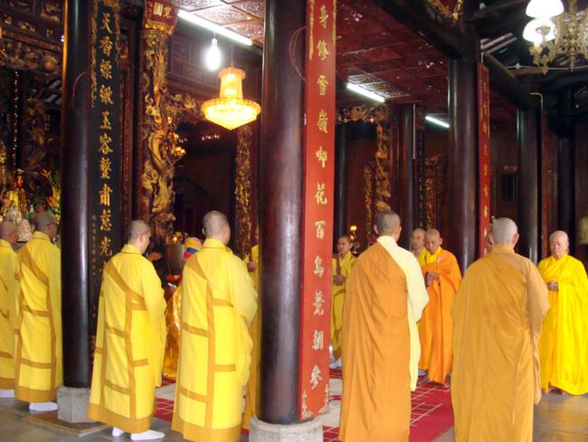 Mở đầu Khóa lễ, Ban Tổ Chức cung thỉnh Chư tôn thiền đức quang lâm Tổ đường và Phật điện để bạch Tổ, bạch Phật – Khai đàn cho toàn thể Hành giả an cư được ân triêm công đức.
