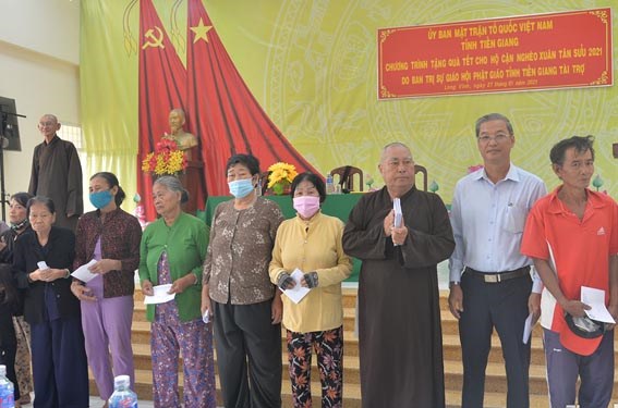 Phát huy tinh thần “Đạo pháp đồng hành cùng dân tộc” của Phật giáo, hằng năm, Ban Trị sự Giáo hội Phật giáo tỉnh Tiền Giang tặng hàng ngàn phần quà tết cho người nghèo.