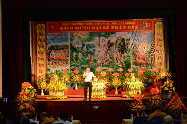 Phát biểu tại buổi lễ, ông: Lương Văn Cầu – Phó chủ tịch UBND tỉnh phát biểu chúc mừng BTS GHPGVN tỉnh Hải Dương nhân dịp Phật Đản, ông cũng bày tỏ niềm vui của mình khi được tham dự buổi lễ Phật giáo trọng đại và đầy ý nghĩa này. Qua đây, ông cũng đánh giá cao những thành tựu đã đạt được của Phật giáo tỉnh Hải Dương trong thời gian qua và hy vọng trong thời gian tới Phật giáo tỉnh tiếp tục phát huy được vai trò của mình, phối hợp cùng chính quyền địa phương để hoàn thành tốt các chủ trương, chính sách của Đảng và Nhà Nước đã giao phó.