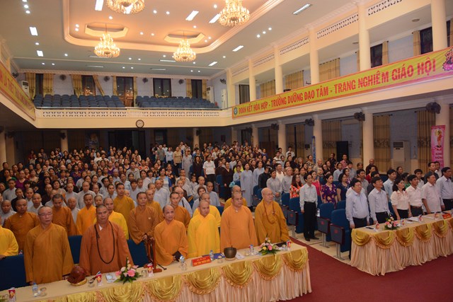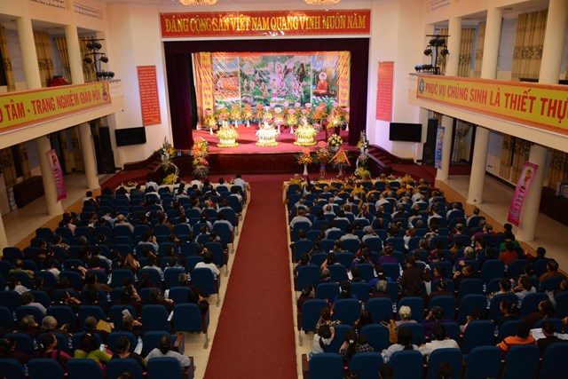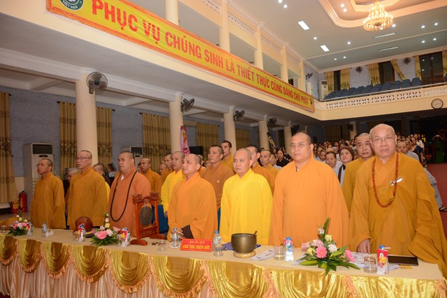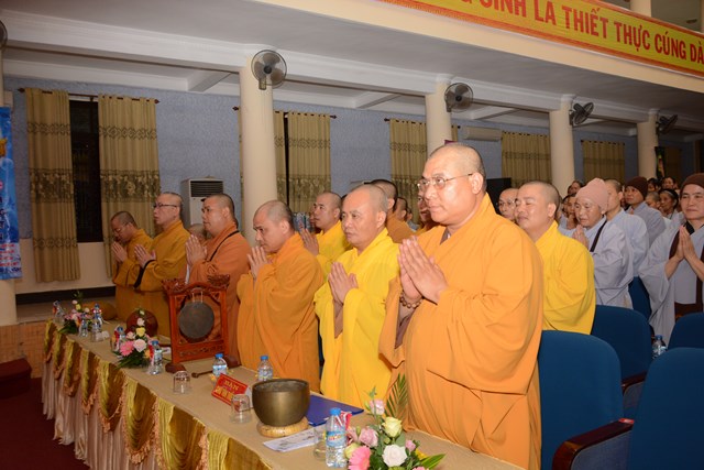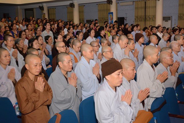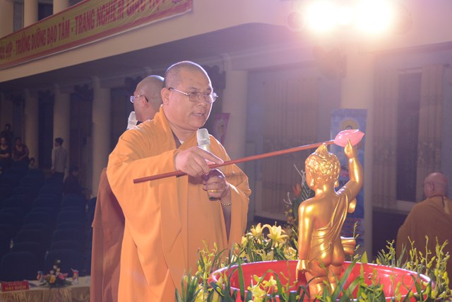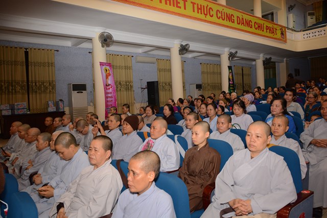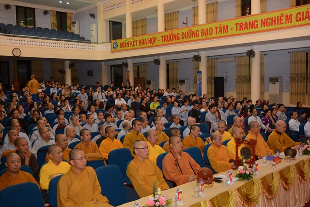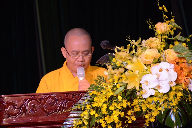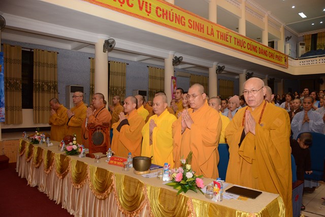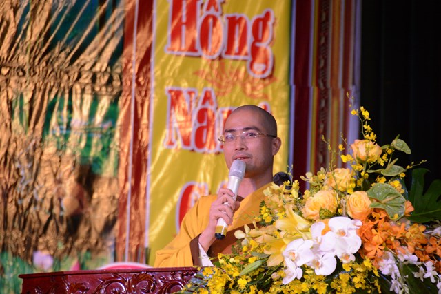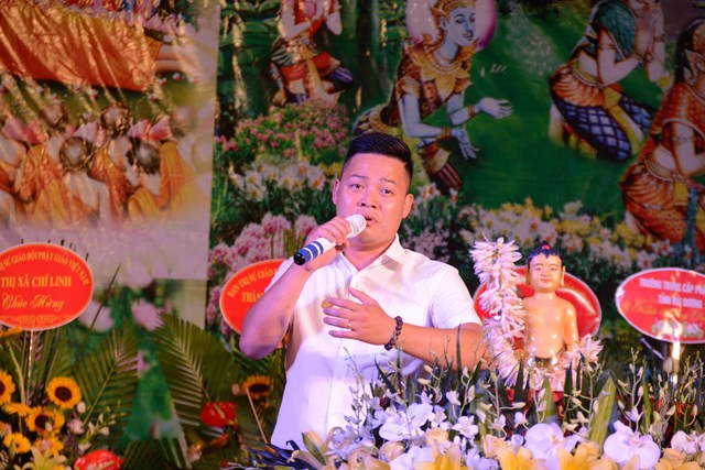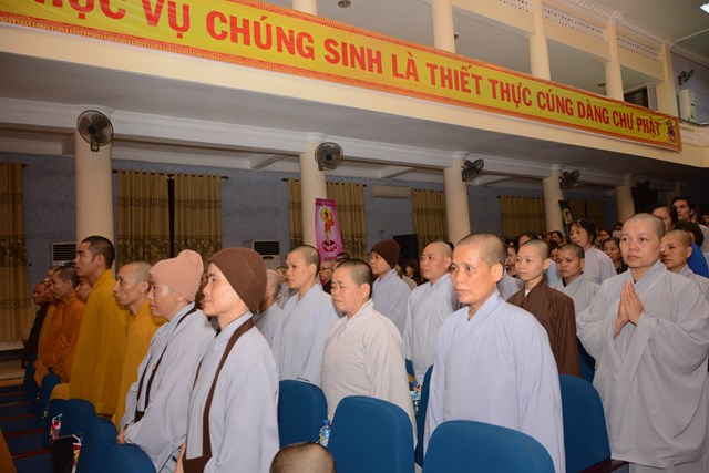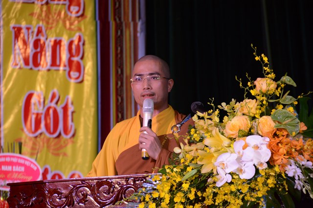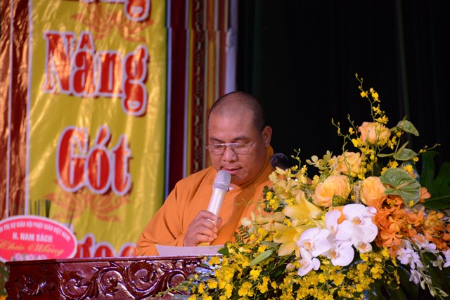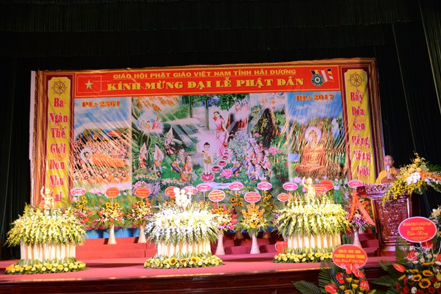 Tiếp theo đó, TT. Thích Thanh Vân – Phó trưởng Ban thường trực BTS GHPGVN tỉnh Hải Dương đã lên tuyên đọc Diễn văn Phật đản PL. 2561 – DL. 2017 của Hòa thượng chủ tịch HĐTS TƯ GHPGVN và khẳng định: “Kỷ niệm ngày Đức Phật đản sanh, chúng ta thành kính tri ân Ngài đã vì hạnh phúc của nhân loại mà hiện sanh ra đời. Sức sống vĩ đại của Đức Bổn Sư Thích Ca Mâu Ni chính là hình ảnh Tăng già, đó là đoàn thể của các vị Tỳ kheo, Tỳ kheo Ni, là sự hiện hữu của Đức Phật trên thế gian này. Phật pháp trường tồn là nhờ sự hiện hữu của Tăng già, nhờ vào sức mạnh của trí tuệ và giới luật. Vì vậy, vì sự trường tồn của Tăng già là trách nhiệm của mỗi Tỳ kheo, Tỳ kheo Ni từ thế hệ này đến thế hệ khác.”