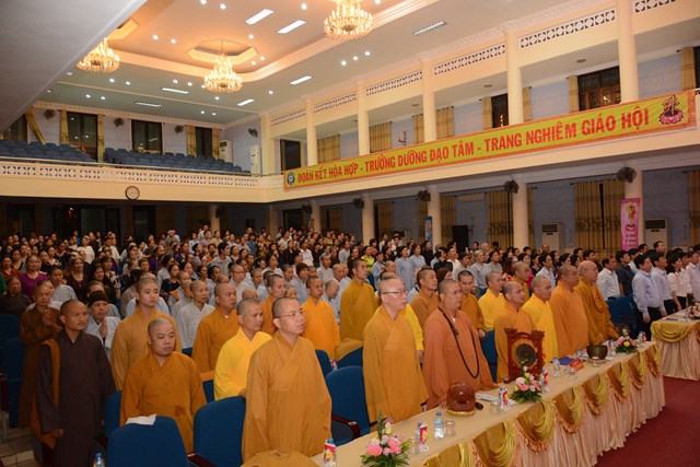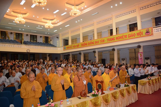 Sau nghi thức chào Quốc kỳ, đạo kỳ, một phút nhập từ bi quán tưởng nhớ đến chư lịch đại Tổ sư, các vị lãnh tụ đã hy sinh qua các thời kỳ và niệm Phật cầu gia bị, Hòa thượng Thích Quảng Tùng đã lên cung tuyên thông điệp Phật đản của Hòa thượng chủ tịch HĐCM TƯ GHPGVN gửi tăng ni Phật tử trong nước và nước ngoài nhân dịp Phật đản PL. 2561 – DL. 2017. Bức thông điệp đã nêu rõ “Mùa Phật đản Vesak thiêng liêng PL.2561 – DL.2017 trở về rộn ràng trong không khí Tăng Ni và Phật tử Giáo hội Phật giáo Việt Nam đoàn kết, tập trung trí tuệ cùng nhau tổ chức thành công Đại hội đại biểu Phật giáo các tỉnh, thành phố, tiến tới Đại hội Phật giáo toàn quốc nhiệm kỳ VIII (2017 – 2022). Sự phát triển ổn định, bền vững của tổ chức Giáo hội Phật giáo Việt Nam ở tất cả các cấp là nền tảng vững chắc cho sự nghiệp hoằng dương Chính pháp, gìn giữ và phát huy sự trong sáng, truyền thống hộ quốc an dân, đồng hànhcùng dân tộc của Phật giáo Việt Nam.”