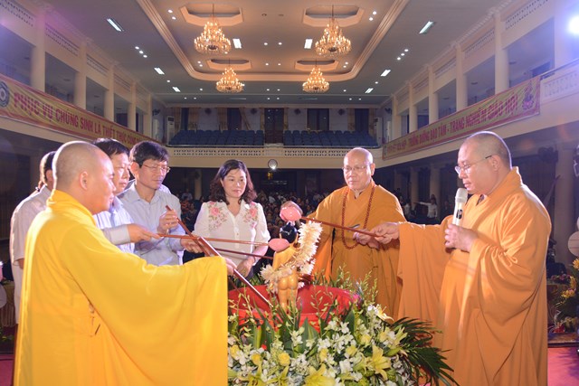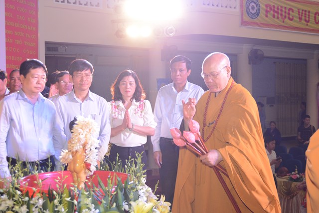 Trước khi kết thúc buổi lễ, Chư tôn đức tăng ni, các cấp chính quyền và bà con Phật tử đã cử hành nghi lễ niêm hương bạch Phật, nghi lễ tụng kinh Phật đản cầu nguyện thế giới hòa bình, chúng sinh an lạc và lễ mộc dục truyền thống.
