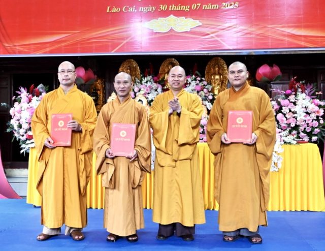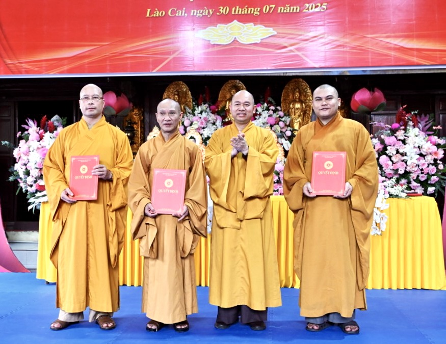 Chiều ngày 30/7/2025, tại chùa Tân Bảo – trụ sở GHPGVN tỉnh Lào Cai long trọng tổ chức lễ công bố quyết định chuẩn y nhân sự chủ chốt và các ban chuyên môn của BTS GHPGVN tỉnh Lào Cai (mới) nhiệm kỳ 2022 – 2027.