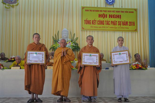 – Sau một năm hoạt động tích cực, nhiều tập thể và cá nhân chư Tôn đức được GHPGVN tỉnh Tiền Giang tặng Bằng Tuyên Dương Công Đức khích lệ.