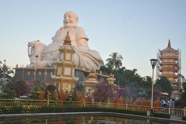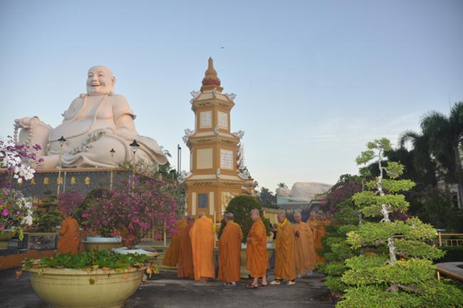 – Được biết, vào sáng sớm hôm nay, cũng tại chùa Vĩnh Tràng, theo thông lệ hàng năm, với tâm niệm “uống nước nhớ nguồn” chư Tôn đức đã trang nghiêm cử hành lễ Nhiễu Tháp tưởng niệm chư liệt vị Hòa Thượng tiền bối đã dày công khai sáng chùa Vĩnh Tràng – Một công trình kiến trúc văn hóa đặc sắc của Phật giáo Nam Bộ nói chung và Phật giáo Tiền Giang nói riêng; Tưởng niệm đến chư Hòa Thượng đã dày công xây dựng Phật giáo tỉnh Tiền Giang ngày một quy củ và hưng thạnh.