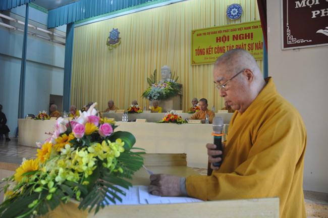 + Hòa Thượng xin một lần nữa tán thán tinh thần đoàn kết hoạt động Phật sự của tập thể các Ban ngành Phật giáo trực thuộc, BTSPGVN các huyện, thị, thành. Chư Tăng Ni, Phật tử tỉnh nhà trong năm qua. Hòa Thượng cũng xin bày tỏ lời tri ân sâu sắc đến với chư vị lãnh đạo các cấp chánh quyền, đã tạo mọi điều kiện thuận lợi nhất cho BTSGHPGVN tỉnh Tiền Giang, Tăng Ni các tự viện và Phật tử trong tỉnh hoàn thành tốt đẹp các công tác Phật sự cũng như an tâm tu tập.