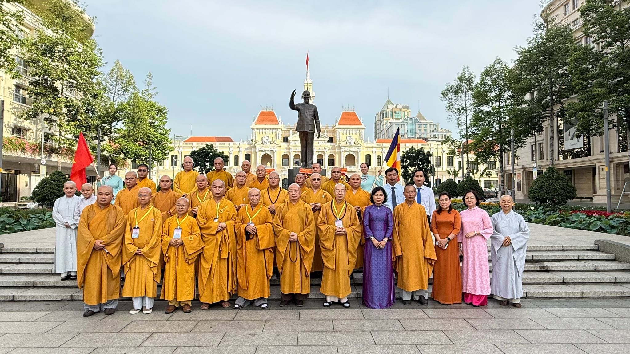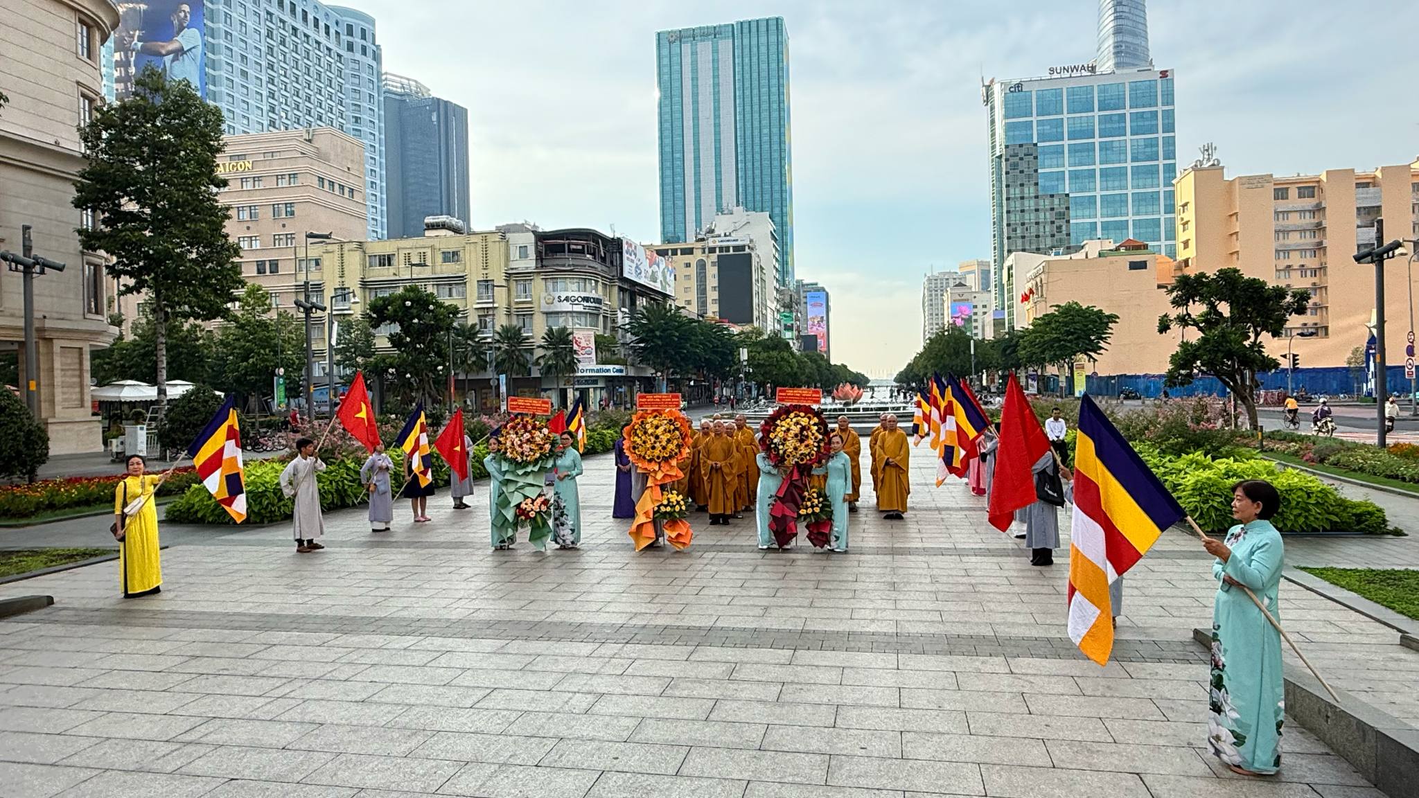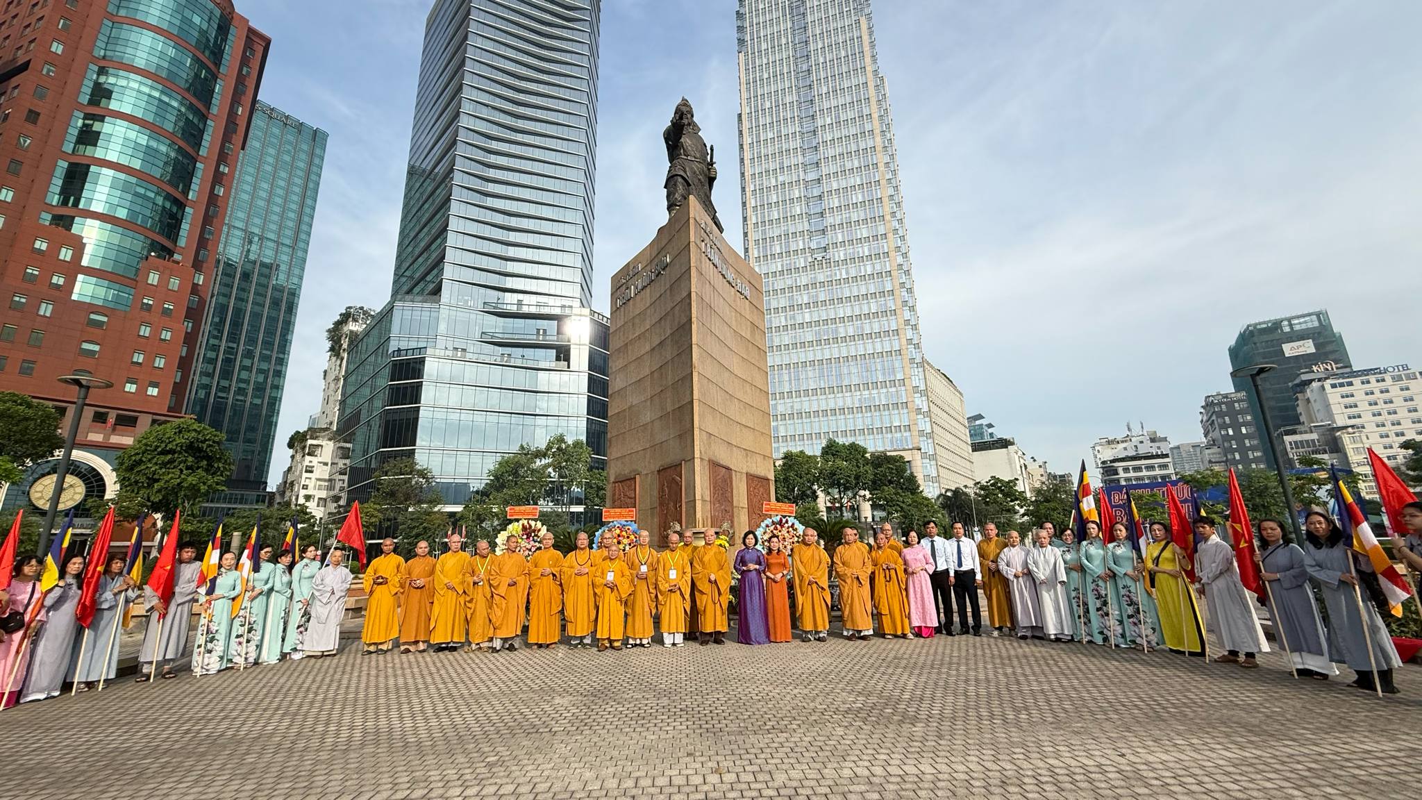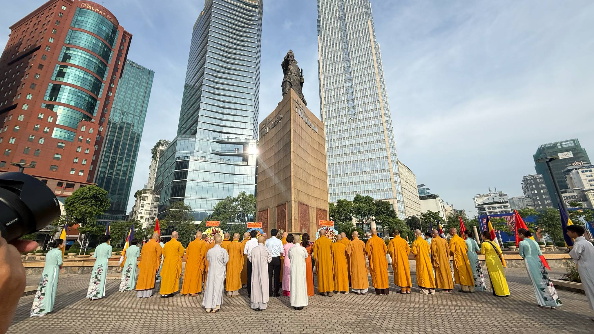 Sáng nay, 11-5 (nhằm 14-4 ÂL), Ban Thường trực BTS GHPGVN TP.HCM, và các BTS Phật giáo Q.1, Q.4, Q.Phú Nhuận cùng chính quyền Quận Uỷ, HĐND,UBMTTQ Q.1 và chư tôn Đức Tăng Ni, Phật tử các tự viện Q.1 đã đến đặt vòng hoa và thắp hương tưởng niệm tại Tượng đài Bác Hồ, tượng đài Đức thánh Trần Hưng Đạo và tượng đài Liệt nữ Quách Thị Trang (Q.1).