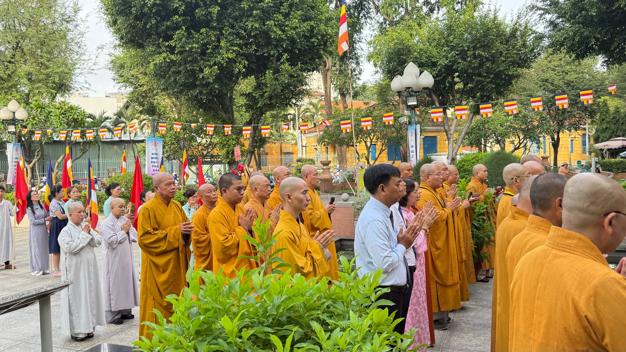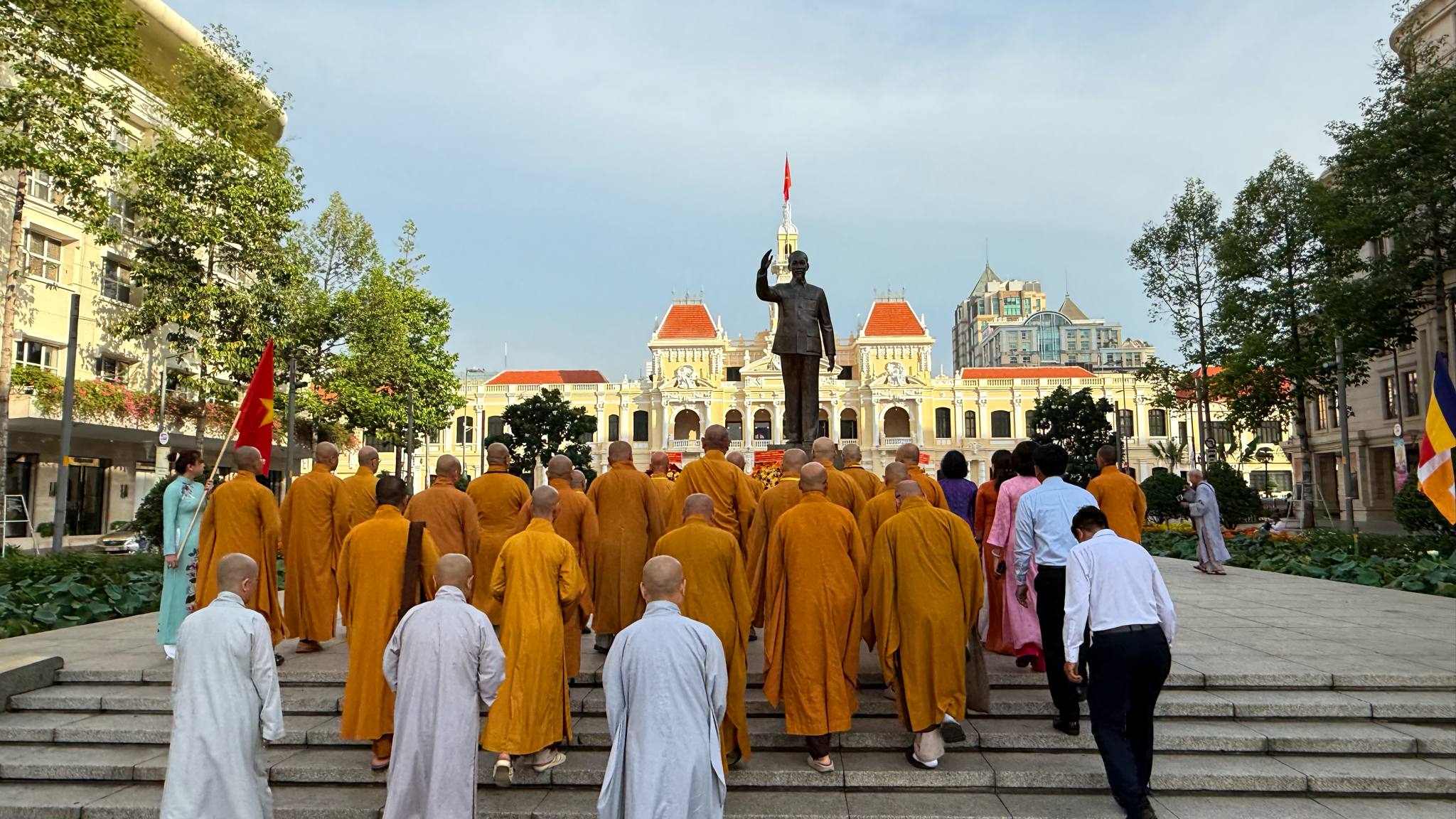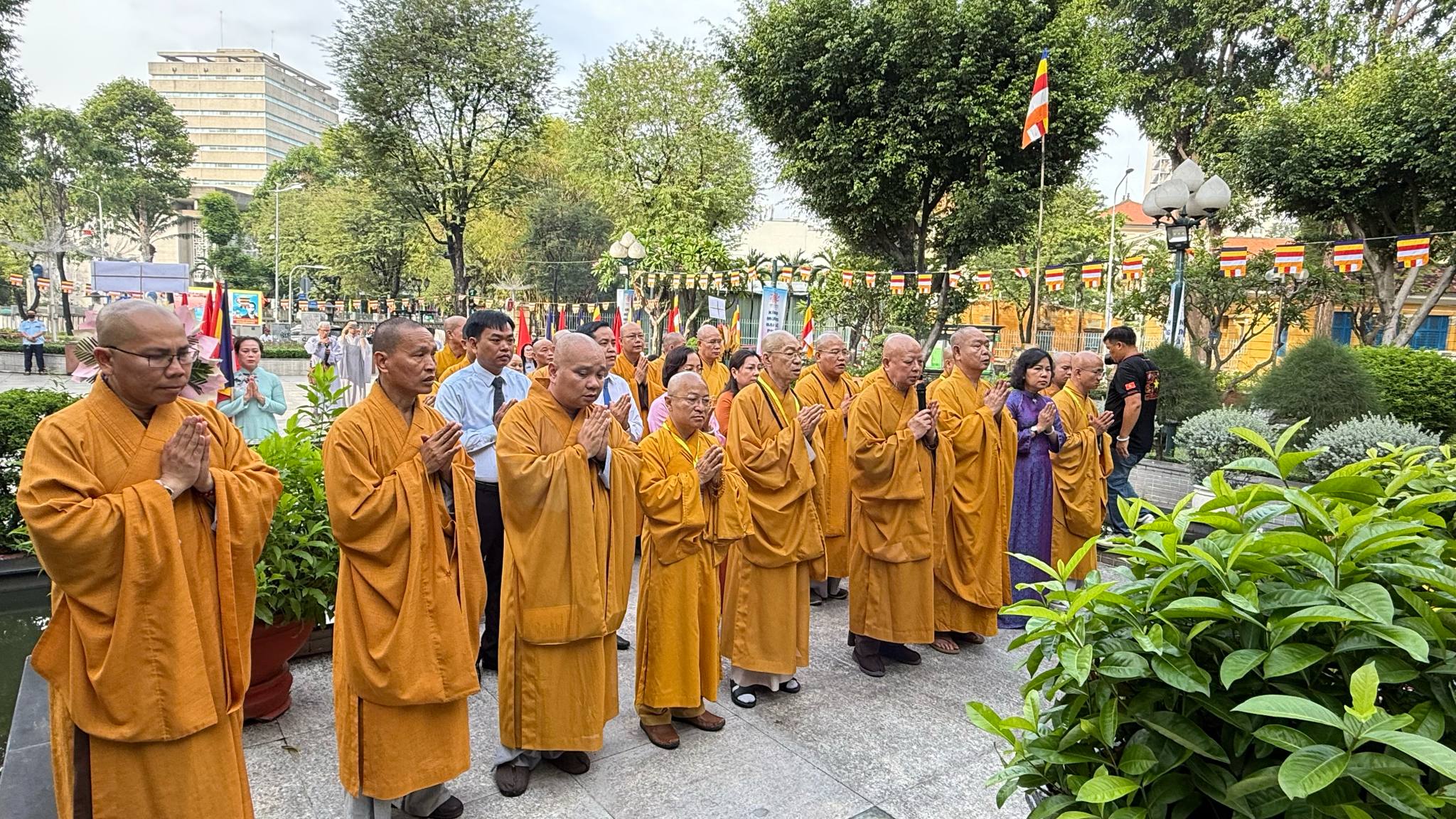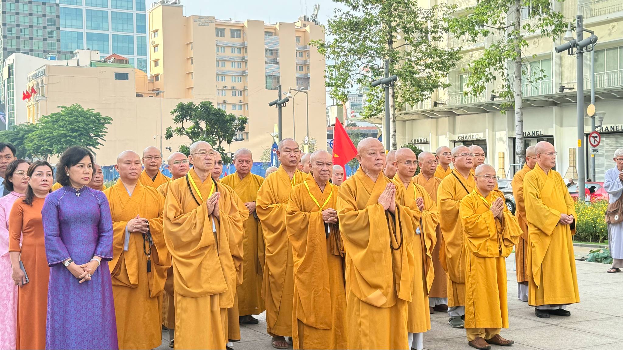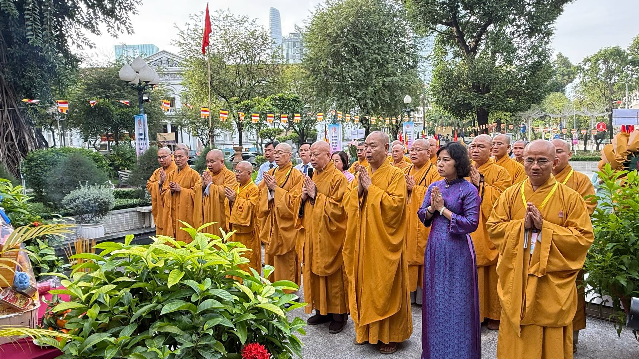 Sáng nay, 11-5 (nhằm 14-4 ÂL), Ban Thường trực BTS GHPGVN TP.HCM, và các BTS Phật giáo Q.1, Q.4, Q.Phú Nhuận cùng chính quyền Quận Uỷ, HĐND,UBMTTQ Q.1 và chư tôn Đức Tăng Ni, Phật tử các tự viện Q.1 đã đến đặt vòng hoa và thắp hương tưởng niệm tại Tượng đài Bác Hồ, tượng đài Đức thánh Trần Hưng Đạo và tượng đài Liệt nữ Quách Thị Trang (Q.1).