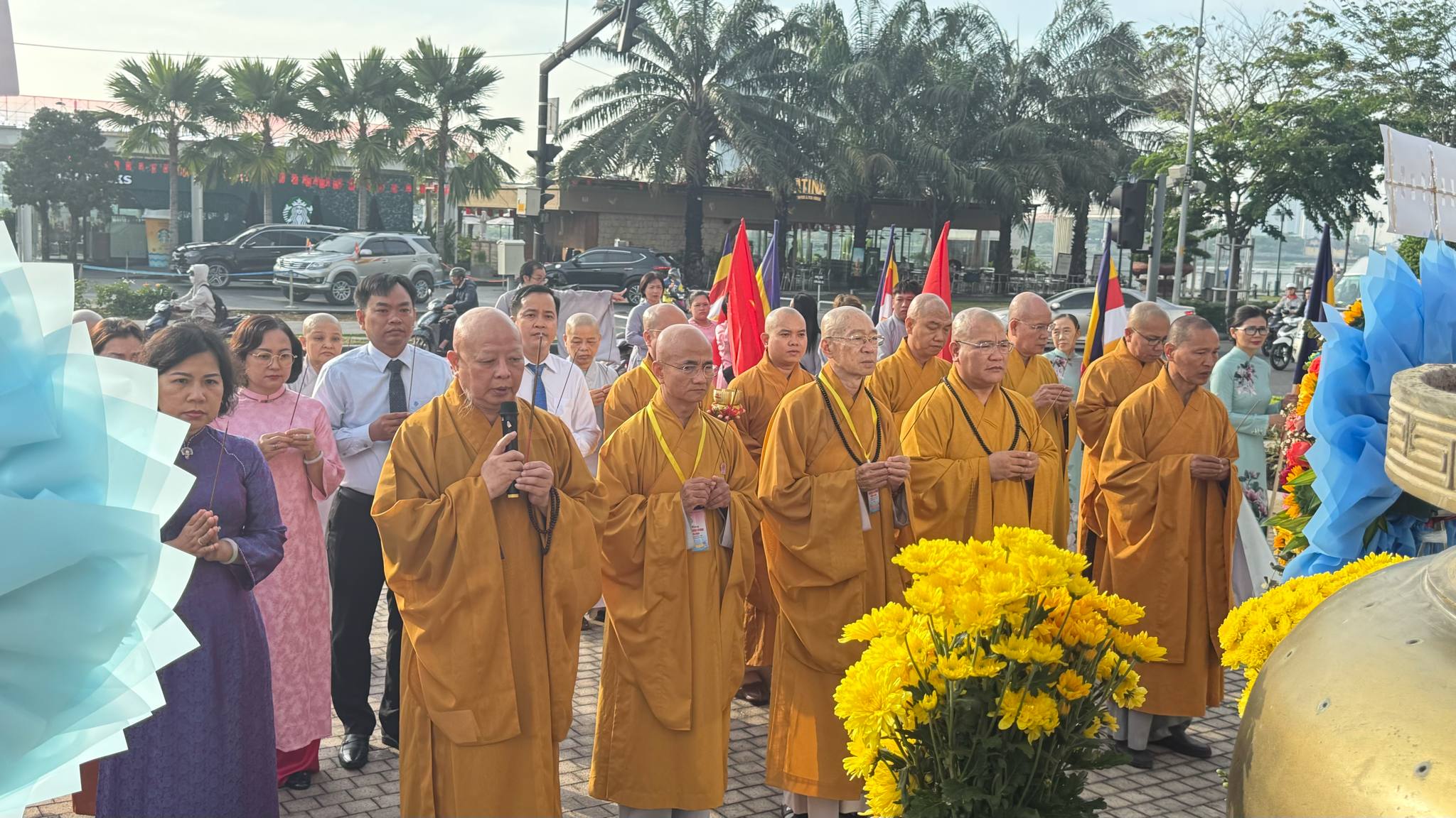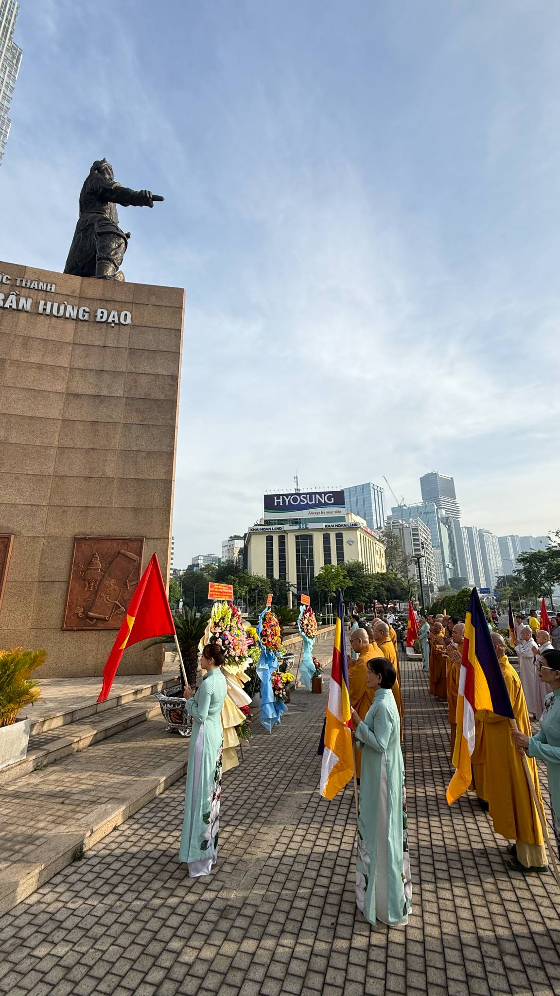 Tại tượng đài Bác Hồ, và tượng đài Đức thánh Trần Hưng Đạo đoàn đã đặt vòng hoa và thắp hương tưởng niệm. Sau đó, đoàn đã đến tượng đài Liệt nữ Phật tử Quách Thị Trang đang an trí tạm tại công viên Bách Tùng Diệp để tưởng niệm. Đoàn đã đặt vòng hoa, thắp hương tưởng niệm cố Phật tử Quách Thị Trang đã vị pháp hi sinh trong phong trào đấu tranh bảo về Đạo Pháp năm 1963.