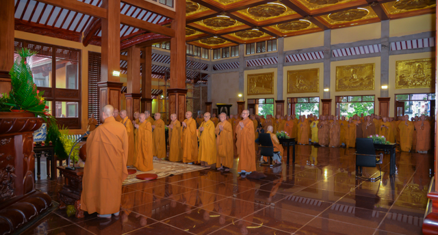 HT. Thích Trí Quảng Phó pháp chủ HĐCM GHPGVN, Trưởng Ban Trị sự Giáo Hội Phật Giáo Việt Nam TP.HCM và HT.Thích Viên Giác – Thành Viên Hội Đồng chứng minh GHPGVN đối thú an cư. Tiếp đó, Chư tôn đức toàn thể đạo tràng tác pháp an cư. Được biết, sau lễ tác pháp an cư mỗi tháng chư tôn đức sẽ về Việt Nam Quốc Tự hành lễ Bố tát tụng giới.