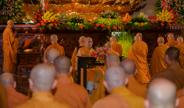 Buổi lễ tác pháp an cư diễn ra trang nghiêm thanh tịnh với 153 hành giả thuộc hàng giáo phẩm trực thuộc GHPGVN TP.HCM về tham dự. Dẫn lễ cho buổi lễ tác pháp an cư do TT.Thích Lệ Trang đảm trách.
