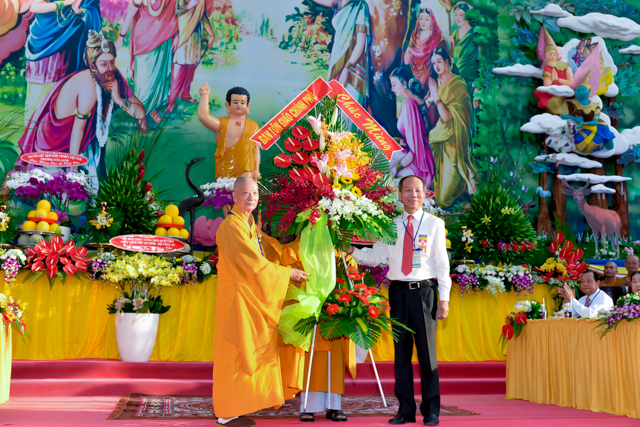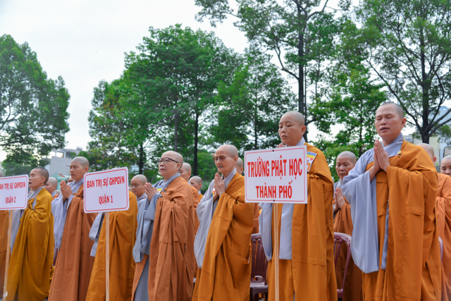 Quang lâm chứng minh, tham dự có sự hiện diện của chư tôn giáo phẩm Thường trực HĐCM, HĐTS GHPGVN, Thường trực BTS GHPGVN TP.HCM, chư tôn đức BTS Phật giáo 24 quận/huyện: HT.Thích Đức Nghiệp – Phó Pháp chủ HĐCM; HT.Thích Trí Quảng – Phó Pháp chủ HĐCM, Trưởng BTS GHPGVN TP, Trưởng ban Tổ chức Đại lễ; HT.Thích Hiển Tu – Phó Thư ký HĐCM HĐTS GHPGVN; HT.Thích Thiện Nhơn – Chủ tịch HĐTS GHPGVN; HT.Thích Thiện Pháp – Phó Chủ tịch Thường trực HĐTS kiêm Trưởng ban Tăng sự T.Ư, HT.Thích Thiện Tánh – Phó Chủ tịch HĐTS, Phó Trưởng ban Thường trực BTS GHPGVN TP; HT.Thích Thiện Tâm – Phó Chủ tịch HĐTS, Phó Ban Trị Sự GHPGVN TP.HCM… cùng đông đảo Phật tử trên toàn thành phố về tham dự.