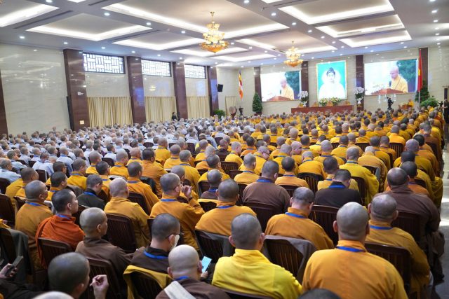 Trong chuyên đề pháp luật tôn giáo, đại diện Sở Dân tộc và Tôn giáo TP.HCM, ông Vũ Huy Long – Phó Trưởng phòng Phật giáo, trình bày nội dung liên quan Luật Tín ngưỡng, tôn giáo, với gần 1.000 chư Tăng Ni tham dự.