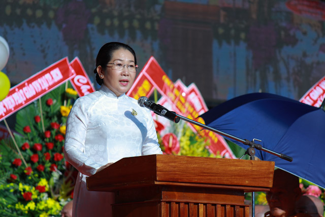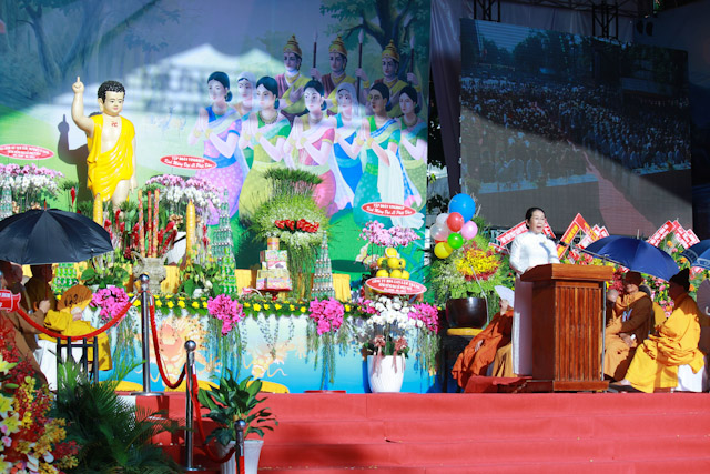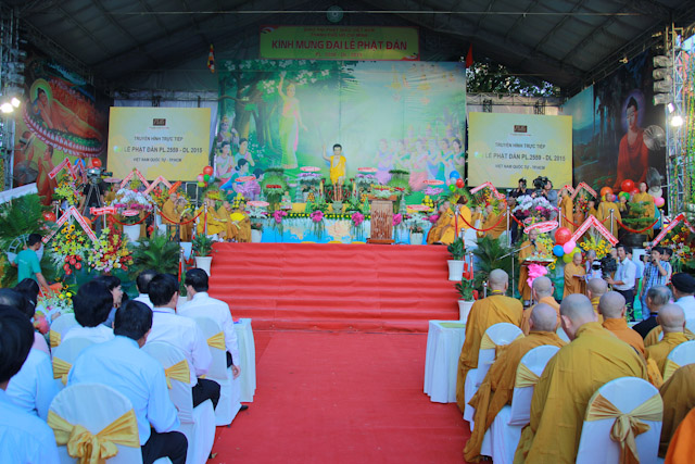 Thay mặt lãnh đạo chính quyền TP. HCM, bà Võ Thị Dung, Chủ tịch UB MTTQVN TP đã có bài phát biểu chúc mừng Phật đản PL 2559. Bài phát biểu đã nêu rõ ý nghĩa quan trọng của Đại lễ Phật đản đối với người Phật tử. Sự kiện đản sanh của đức Phật mang lại thông điệp hòa bình đến với toàn thể nhân loại, mang ánh sánh của từ bi trí tuệ cho khắp nhân gian. Bà cũng nhấn mạnh những đóng góp của Phật giáo trong công tác an sinh xã hội, đặc biệt bà nhấn mạnh hoạt động kiến thiết Việt Nam Quốc Tự.