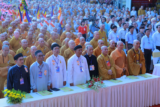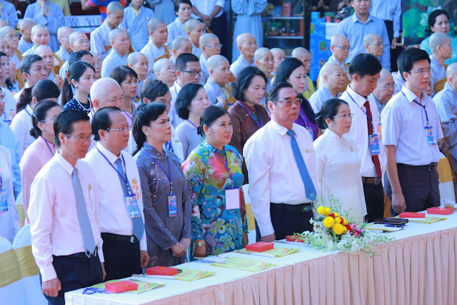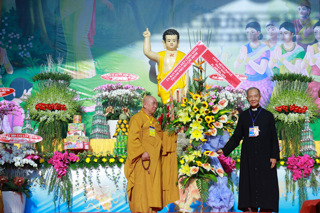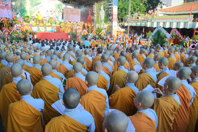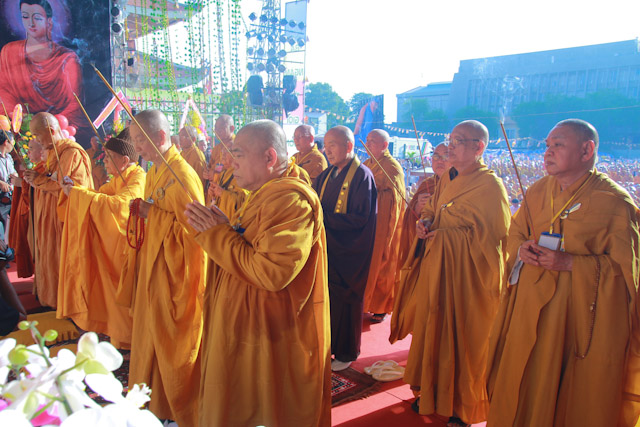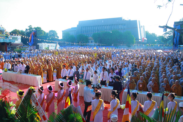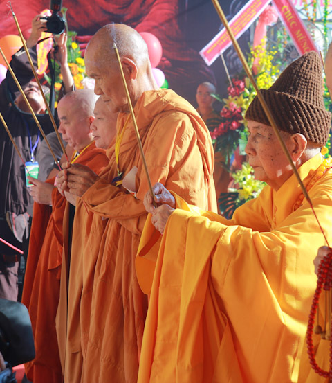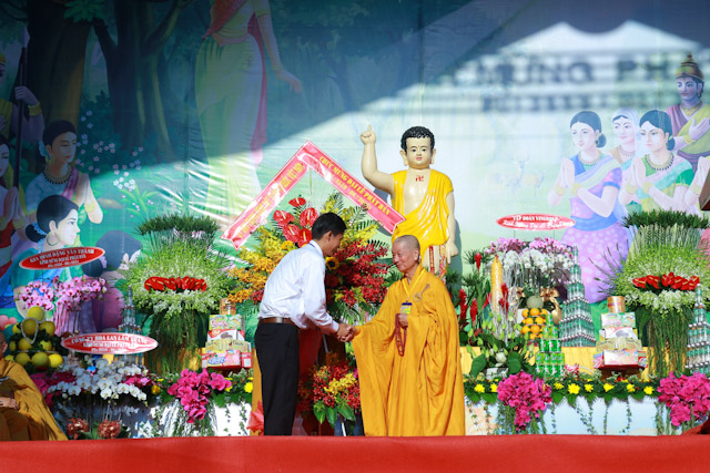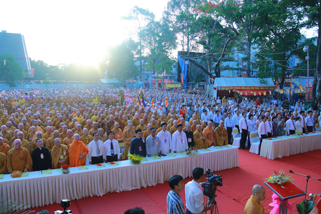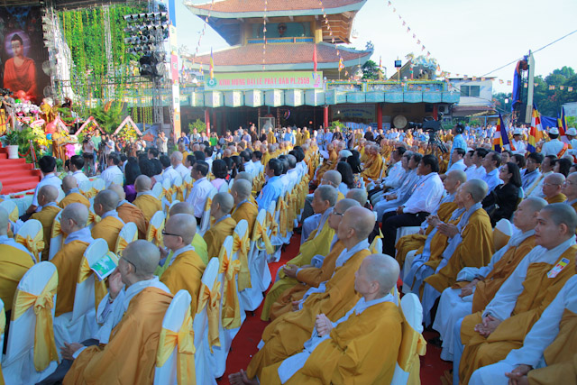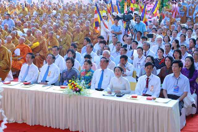 Quang lâm chứng minh và tham dự có sự hiện diện của HT.Thích Đức Nghiệp, Phó Pháp chủ; HT.Thích Hiển Tu, Phó Thư ký; HT.Thích Giác Tường, HT.Thích Viên Giác, đồng Uỷ viên Thường trực Hội đồng Chứng minh; HT.Thích Thiện Nhơn, Chủ tịch HĐTS; HT.Thích Thiện Pháp, Phó Chủ tịch Thường trực HĐTS; HT.Thích Trí Quảng, Phó Chủ tịch HĐTS, Trưởng ban Tổ chức Đại lễ; Chư Hoà thượng Phó Chủ tịch: HT.Thích Giác Toàn, HT.Thích Thiện Tâm, HT.Thích Thiện Tánh; chư tôn giáo phẩm Ban Thường trực HĐTS, BTS GHPGVN TP cùng hàng ngàn Tăng Ni và Phật tử đến từ 24 quận huyện trên toàn thành phố.