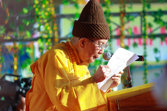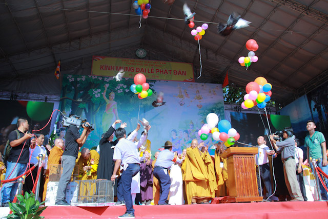 Kết thúc buổi lễ, Chư Tôn Đức và quý quan khách đã cùng thả bong bóng và chim bồ câu, cầu nguyện cho hòa bình, chúng sanh an lạc. HT.Thích Như Niệm, Phó BTS PG TP, Phó Trưởng Ban Tổ chức nói lời cảm tạ.