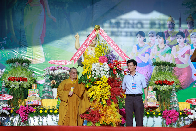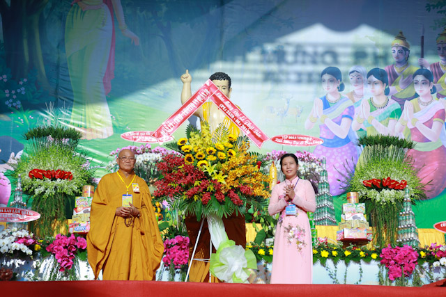 Tiếp theo đó, Chư Tôn Đức trong Ban Thường trực GHPGVN TP. HCM đã đại diện nhận các lẵng hoa chúc mừng của các cơ quan, đơn vị đại diện chính quyền Trung ương và Thành phố.