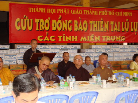 Theo thông bạch của Trung ương GHPGVN và lời kêu gọi của UBMT Tổ quốc TP.HCM, Thành hội Phật giáo TP.HCM tổ chức báo cáo kết quả vận động cứu trợ đồng bào bị lũ lụt đợt 1 và vận động cứu trợ đồng bào lũ lụt đợt 2 tại giảng đường Tổ Đình Vĩnh Nghiêm, Q.3. Dưới sự tham dự và chứng minh gồm HT. Thích Nhật Quang, HT. Thích Thiệnh Tánh, HT. Thích Giác Tòan, HT. Thích Như Tín, Ni Sư Thích Nữ Như Ngọc..cùng các ban đại diện 24 Quận, Huyện trong Thành phố. Về phía chính quyền có ông Trần Trung Tính, ông Lê Hoàng Vân…và các báo, đài cùng với Thiện nam tín nữ Phật tử về tham dự.