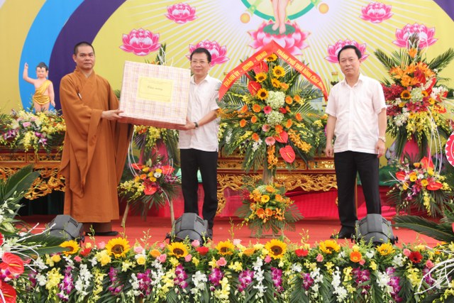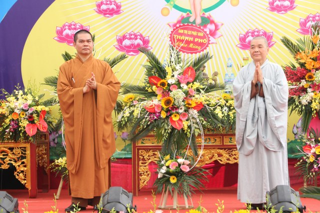 Dịp này, chư tôn đức chứng minh, quý quan khách, đại diện Phật tử đã tặng hoa chúc mừng BTS PG thành phố nhân dịp Đại lễ Phật đản. Kết thúc buổi lễ, chư tôn đức, quý vị đại biểu đã dâng hương và cử hành nghi thức tắm Phật trong tinh thần trang nghiêm, thành kính, hòa hợp trong ngày đản sinh của đức Bản sư Thích Ca.