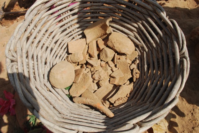 Ngoài các viên gạch cổ, họ đã thu thập được các mảnh gốm vụn và các di vật khác.