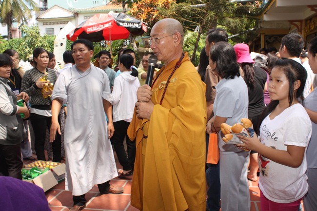 Phát biểu chia sẻ tại buổi phát quà, Đại đức Thích Quảng Tâm đã động viên quý bà con khiếm thị cố gắng vượt qua những khó khăn trong cuộc sống, tu học và trau dồi Phật pháp. Đồng thời nhân mùa Vu lan hiếu hạnh, Đại đức cũng đã nhắc nhở quý bà con Phật tử luôn luôn gìn giữ chữ Hiếu thiêng liêng, cao quý mà người con Phật phải hành trì.