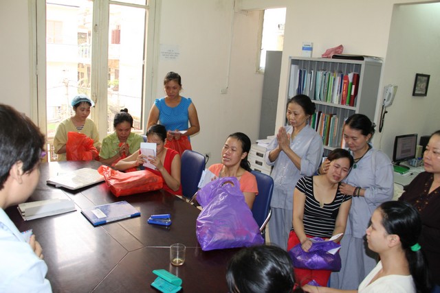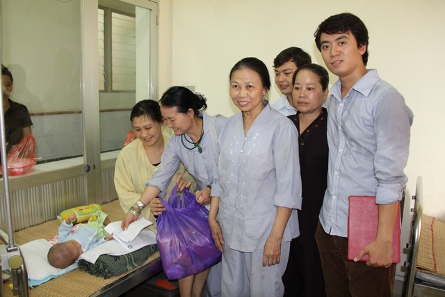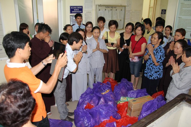 Tại Bệnh viện Tim nhóm phật tử đã trao tặng quà  và tiền cho 41 em thiếu nhi đang nằm điều trị, cùng ngày nhóm phật tử  tiếp tục  đi phát cháo từ thiện cho các bệnh nhân ung thư tại bệnh viện K theo thông lệ hằng tuần .